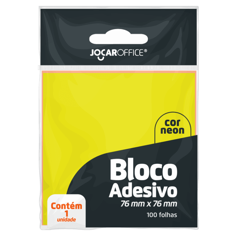 BLOCO ADESIVO AMARELO NEON 76Mmx76mm – OPPBAG C/ 1 BLOCO 100F JOCAR OFFICE