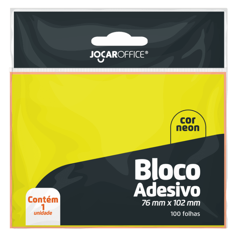 BLOCO ADESIVO AMARELO NEON 76Mmx102mm – OPPBAG C/ 1 BLOCO 100F JOCAR OFFICE