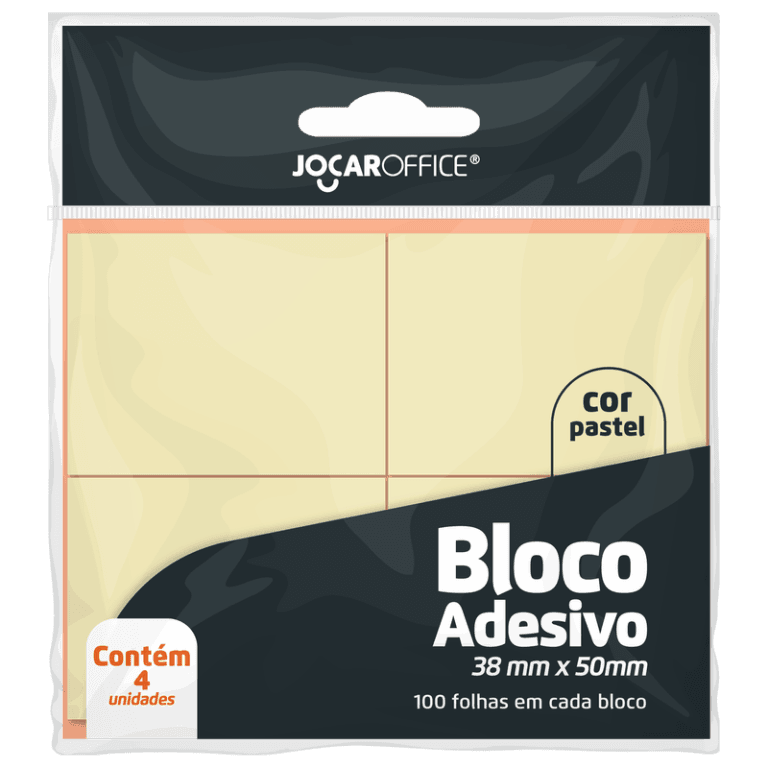 BLOCO ADESIVO AMARELO PASTEL 38MMX50MM – OPPBAG C/ 4 BLOCOS 100F CADA JOCAR OFFICE