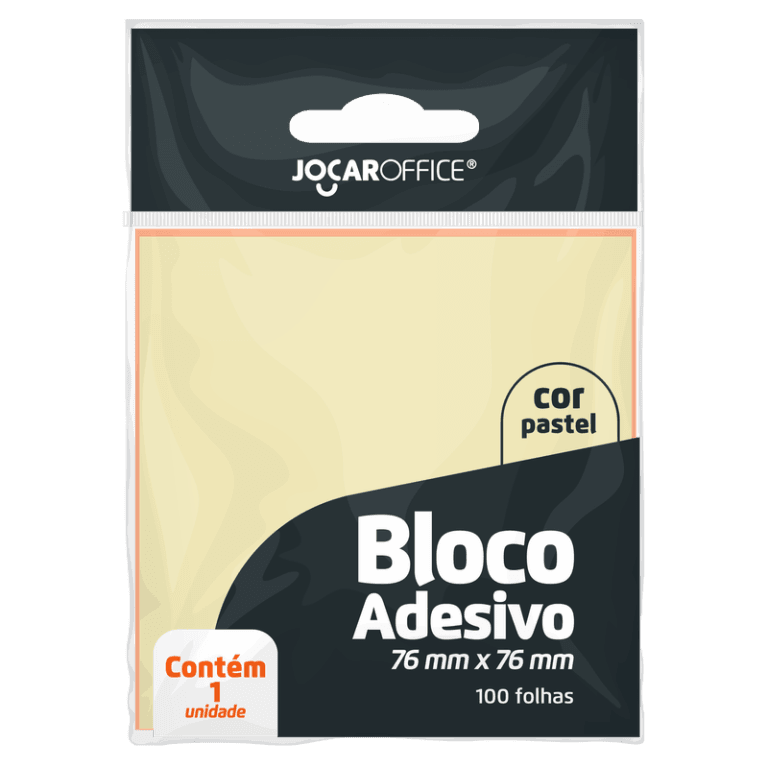 BLOCO ADESIVO AMARELO PASTEL 76Mmx76mm – OPPBAG C/ 1 BLOCO 100F JOCAR OFFICE