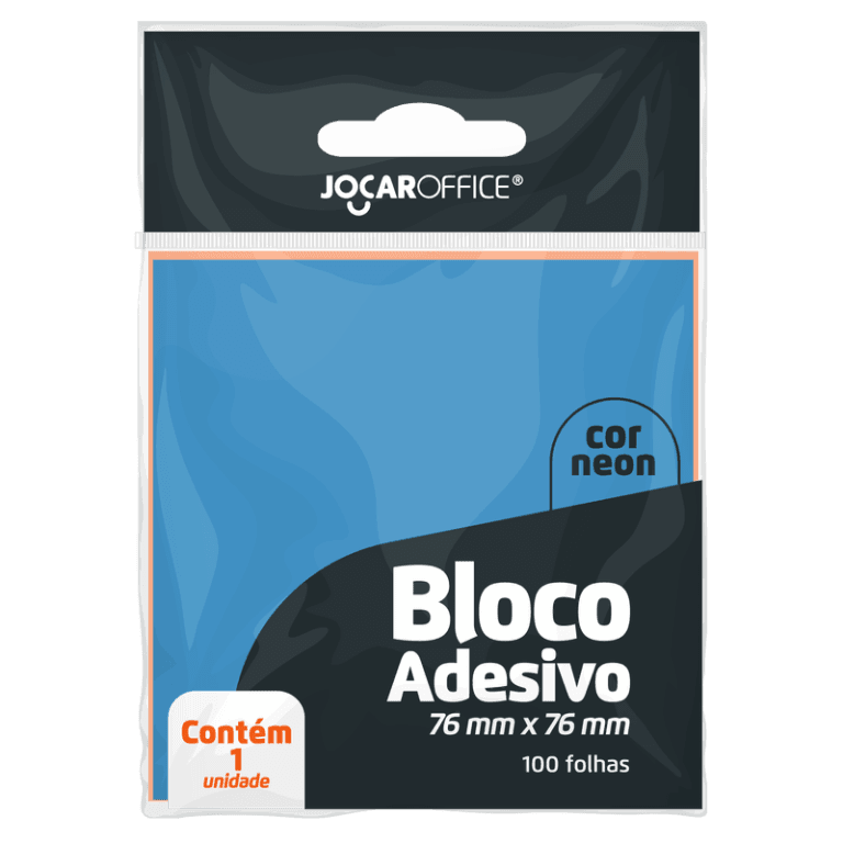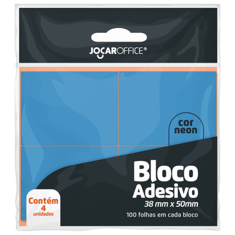 BLOCO ADESIVO AZUL NEON 38MMX50MM – OPPBAG C/ 4 BLOCOS 100F CADA JOCAR OFFICE