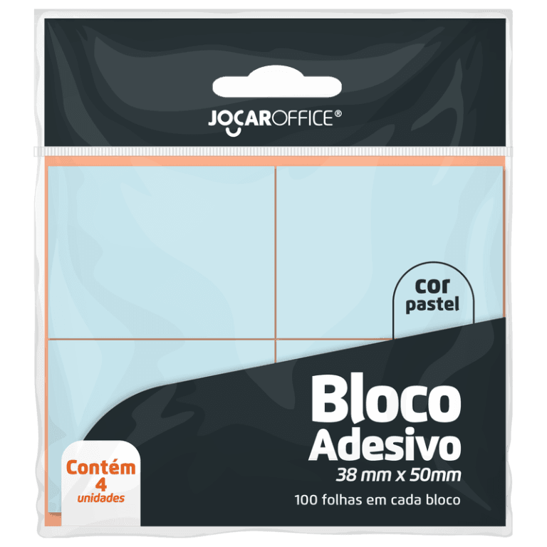 BLOCO ADESIVO AZUL PASTEL 38MMX50MM – OPPBAG C/ 4 BLOCOS 100F CADA JOCAR OFFICE