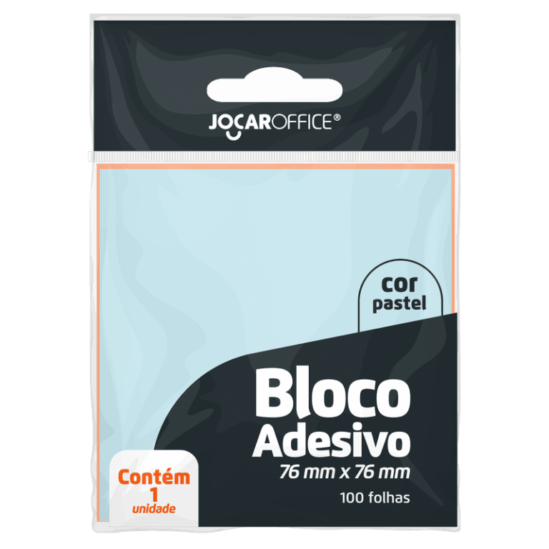 BLOCO ADESIVO AZUL PASTEL 76Mmx76mm – OPPBAG C/ 1 BLOCO 100F JOCAR OFFICE